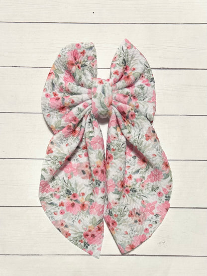 This gorgeous hair bow is the perfect accessory for any occasion! Each bow is made from super soft fabric attached to an alligator clip to stay secure in hair all day long. Each bow is 4” wide and 8” long.